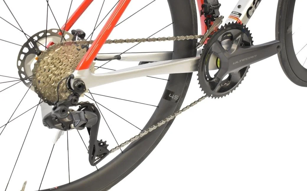 Le CANNONDALE SuperSix EVO Carbon Disc Ultegra Di2, son cadre carbone, sa transmission Shimano Di2, et ses freins à disques hydrauliques Shimano Ultegra.